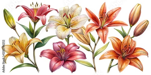 Grunge Oil Painted Lilies - A Stunning Collection of Isolated Floral Artworks for Creative Projects
