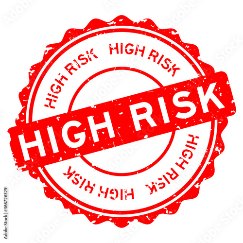 Grunge red high risk word round rubber seal stamp on white background