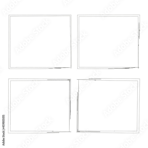 Grunge square frames set. Brush stroke silhouette. Abstract modern. Line background. Vector illustration. Stock image.