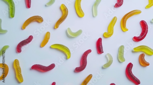 Gummy Worms and Candy on White Background - A Sweet and Colorful Confectionery Display. The Delightful Gummy Worms and Assorted Candies on the Plain White Background, with Their Bright Colors and Temp