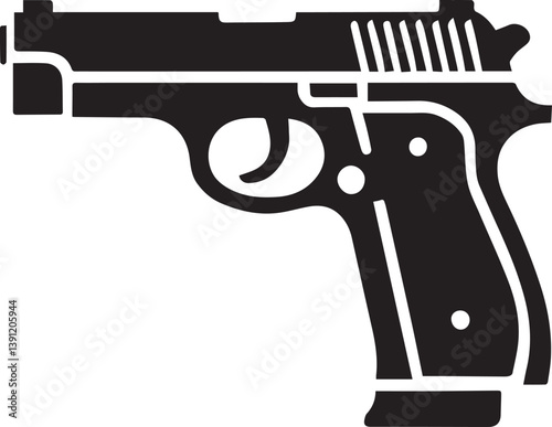 handgun, weapon, handgun, isolated, revolver, military, black, firearm, white, crime, army, police, trigger, automatic, danger, metal, steel, bullet, war, munition, object, security, illustration, vector, silhouette, logotype, design, shotgun, violence, symbol, aiming, fire