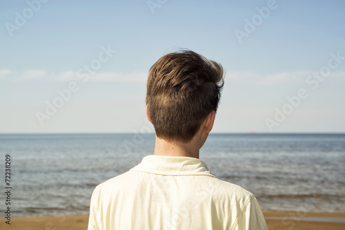 man, young, look, forward, dream, ship, sea, travel, future, behind, from, nape, back, horizon, opening, opportunity, new, concept, summer, youth, teenage, fashion, freedom, nature, romantic, lifestyle, coast, sand, holiday, rest, people, adult, boyfriend, male, teenage, background, sun, colours, life