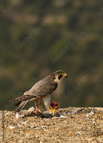 halcon peregrino se alimenta de una presa
