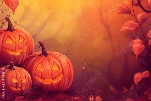 Halloween event background with charming upscale pumpkins. Premium illustration for banners, posters, greetings and Halloween celebrations and copy-space with generative ai