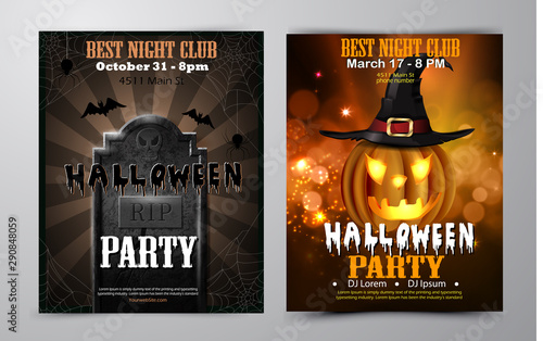 Halloween party flyer set vector