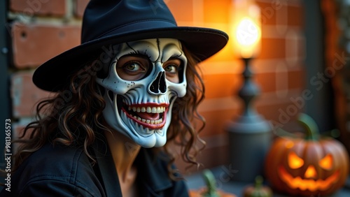 halloween, hat, face, costume, skull, woman, sorcerer, cartoon, scarey, mask, children, black, carnival, vector, horror, head, evil, illustration, pirate, people, skeleton, art, fun, boy, make-up