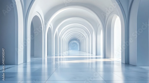 archway, architecture, corridor, hallway, geometric, clean, white color, modern, empty, design, perspective, symmetry, artistic, minimalism, structure, pattern, light, indoor, space, elegance, abstract, style, tiled floor, marble, surface, smooth, luxury, simplicity, visual, representation, decorative, background, monochrome, futuristic, concept, artwork, ornament, detail, repetition, construction, element