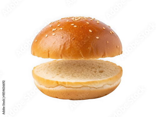Hamburger bun with sesame seeds on top bun isolated on white background isolated on transparent background