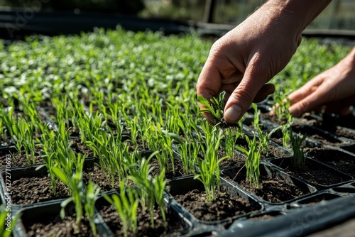 Hand Caring for Young Seedlings in Organic Plant Nursery Work