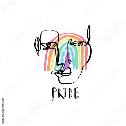 Hand drawing human face line art in cubism style with LGBT flag. Stylish print for clothes, textile and other.