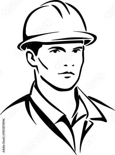 Hand Drawn a man Construction Worker Black and White Avatar Illustration in Minimal Line Art Style Design