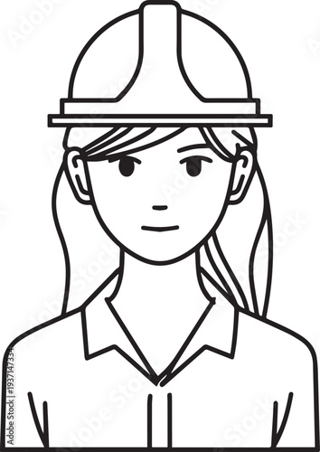 Hand Drawn a Woman Construction Worker Black and White Avatar Illustration in Minimal Line Art Style Design
