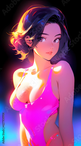 hand-painted, anime, summer, cool, swimwear, girl, illustration, bikini, cute, beautiful, model