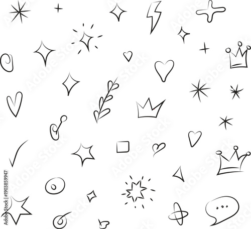 doodle, set, sparkle, star, heart, crown, hand-drawn, vignetting, line, art, vector, illustration, isolated, decorative, element, collection, decoration, simple, flash, burst, shine, magic, cute, graphic, design, pattern, icon, symbol, drawing, whimsical