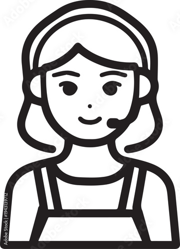 Hand Drawn Female Customer Service Agent Black and White Avatar Illustration in Minimal Line Art Style Design