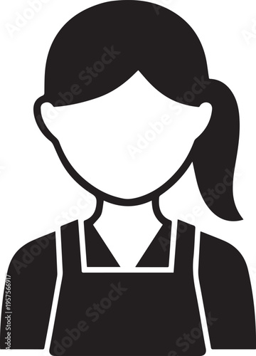 Hand Drawn Female Pilot Black and White Avatar Illustration in Minimal Solid Art Style Design