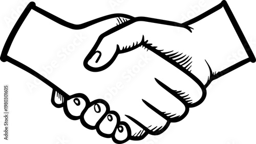 Hand Drawn Handshake Black and White Illustration in Minimal Line Art Style Design