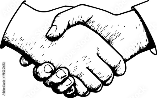 handshake, agreements, partnership, deal, business, cooperation, trust, contract, greeting, teamwork, connection, collaboration, support, oneness, alliance, respect, negotiation, success, human relationships, corporate, hand, gesture, human, interaction, symbol, illustration, drawing, hand-drawn, outline, vignetting, contour, monochrome, black, white, minimal, minimalism, simple, clean, modern, flat, vector, graphic, silhouette, icon, isolated, background, design