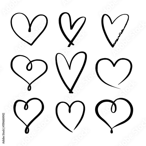 Hand Drawn Heart Shapes Set Romantic Doodle Love Design Elements Valentine Illustration Cute Simple White Hearts Line Art Graphic Design Background Texture Pattern icon card decor style sweet sketch