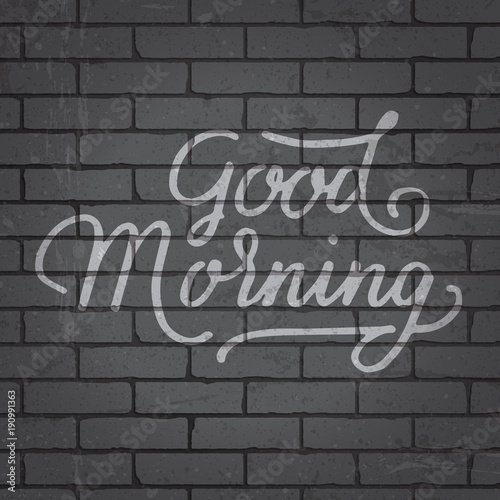 Hand drawn lettering slogan on brick wall background