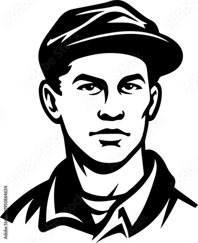 miner, mining, men at work, labourer, industry, excavation, coal, mineral, underground, helmet, hard hat, safety, uniform, equipment, labor, occupation, job, profession, male, man, avatar, portrait, head shot, character, illustration, hand-drawn, outline, vignetting, contour, monochrome, black, white, minimal, minimalism, simple, clean, modern, flat, vector, graphic, silhouette, icon, profile, isolated, background, digital, editable