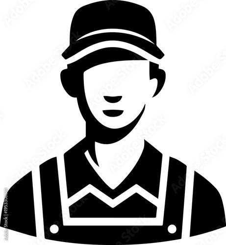 Hand Drawn Male Mine Worker Black and White Avatar Illustration in Minimal Line Art Style Design