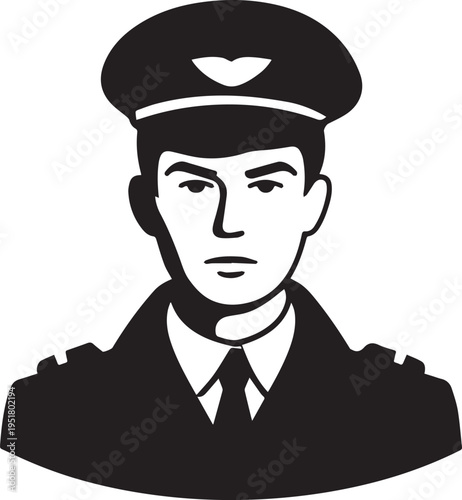 pilot, airman, captain, flight, aviation, aircraft, aeroplane, cockpit, uniform, airline, transport, travel, sky, flying, navigation, professional, occupation, job, man, male, avatar, portrait, head shot, character, illustration, hand-drawn, outline, vignetting, contour, monochrome, black, white, minimal, minimalism, simple, clean, modern, flat, vector, graphic, cartoon, silhouette, icon, profile, isolated, background, digital, editable