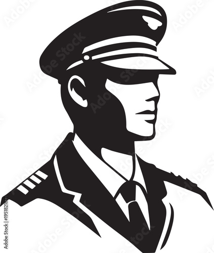 pilot, airman, captain, flight, aviation, aircraft, aeroplane, cockpit, uniform, airline, transport, travel, sky, flying, navigation, professional, occupation, job, man, male, avatar, portrait, head shot, character, illustration, hand-drawn, outline, vignetting, contour, monochrome, black, white, minimal, minimalism, simple, clean, modern, flat, vector, graphic, cartoon, silhouette, icon, profile, isolated, background, digital, editable
