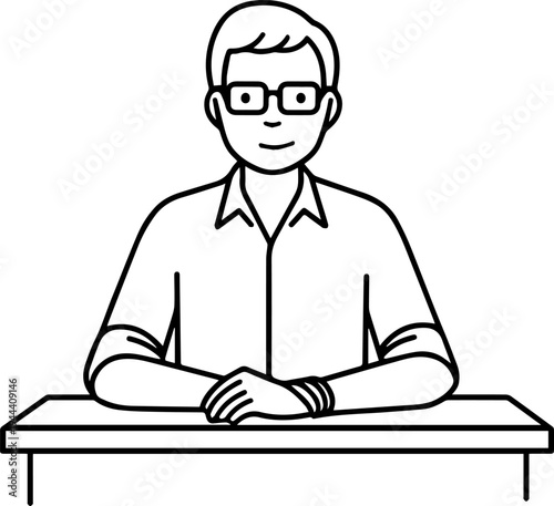 Hand Drawn Man Sitting at Desk Black and White Avatar Illustration in Minimal Line Art Style Design