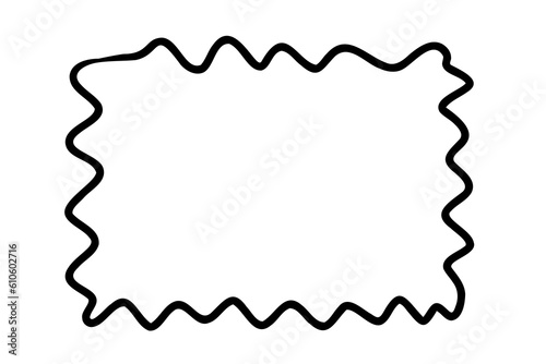 Hand drawn rectangle frame. Doodle wavy curve deformed textured frame. Border sketch. Vector illustration on a white background.