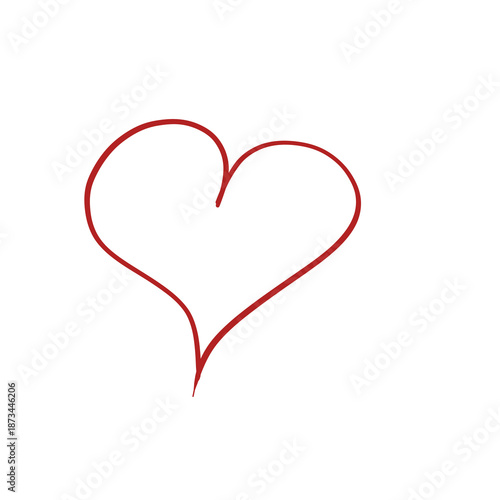 Hand drawn thin brush heart shape, brick red doodle heart isolated on transparent background