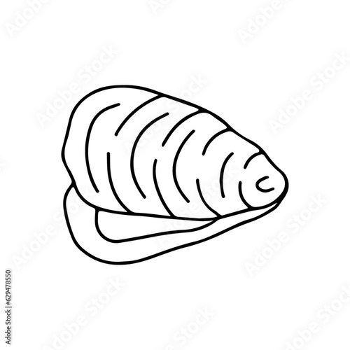 mussel, shell, ocean, seafood, fauna, doodle, hand-drawn, draw, picture, scribble, vignetting, isolated, element, graphic, illustration, simple, vector, logotype, black, line, monochrome, object, stylised, clip art