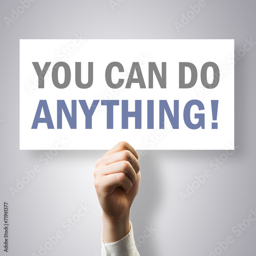 hand holding a sign stating "you can do anything"