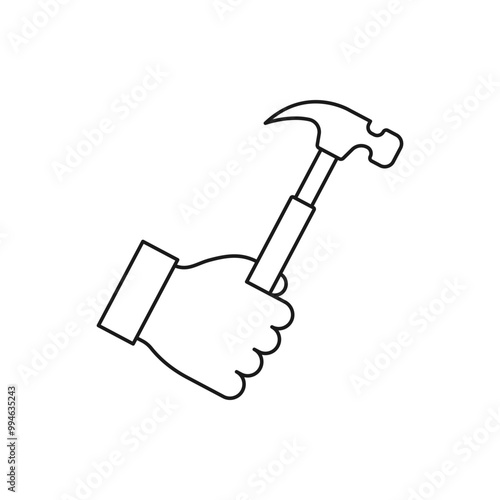 Hand holding claw hammer icon line style isolated on white background. Vector illustration