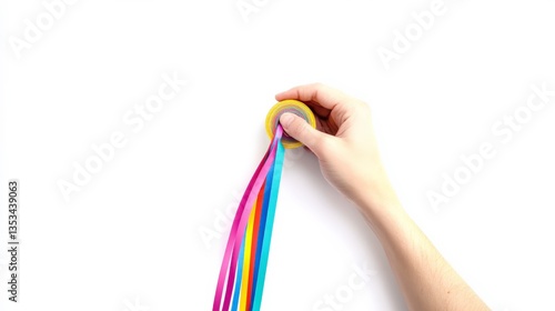 Hand Holding Colorful Tape on White Background