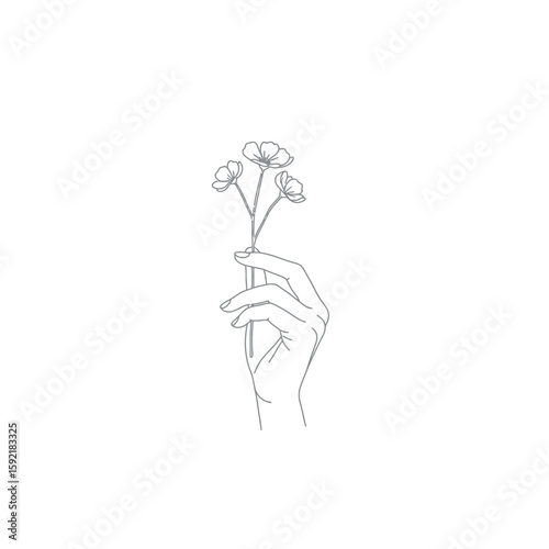 hand, flower, bouquet, line art, floral, illustration, minimalist, vignetting, drawing, graphic, design, art, simple, elegant, delicate, nature, botany, spring, summer, beauty, aesthetic, modern, vector, outline, monochrome