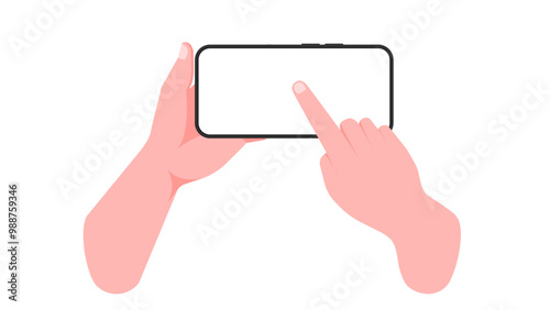 Hand Holding Smartphone Horizontally with Blank Screen, Finger Tap, and Touch - Vector Illustration