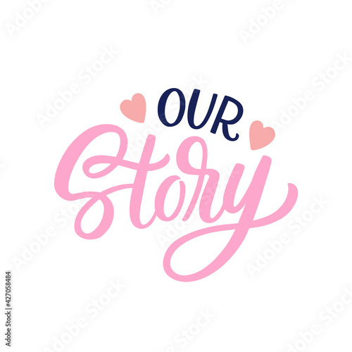 Hand lettered quote. The inscription: our story.Perfect design for greeting cards, posters, T-shirts, banners, print invitations.