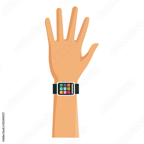hand man with smart watch technology vector illustration