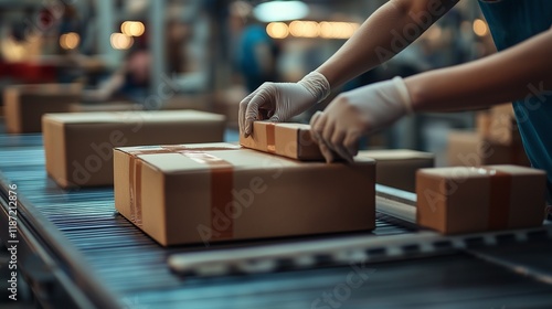 hand packing an order quickly, sealing it with a modern, fast-drying tape, emphasizing the speed of packaging