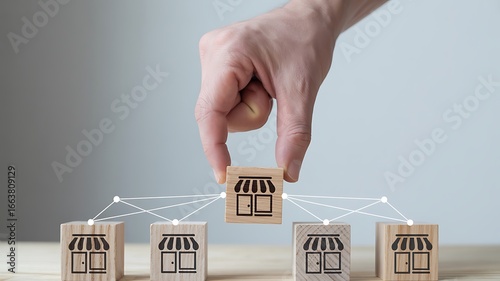 franchises, business, network, connection, expansion, growth, strategy, store, shop, building, cube, hand, placing, adding, joining, partnership, commerce, retail, entrepreneurship, success, concept, idea, organisation, management