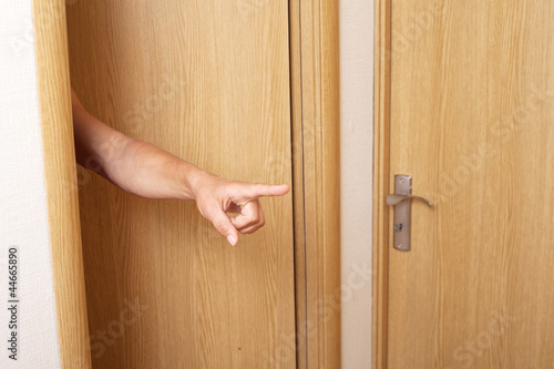 hand, door, signs, point, open, business, entrance, pointing, finger, symbol, wooden, caucasian, palm, arm