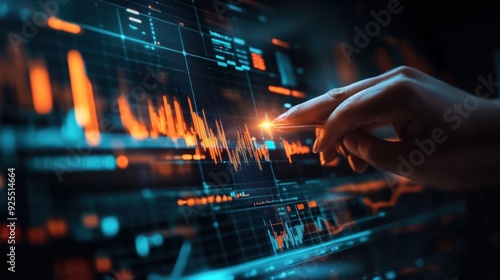 hand, pointing, graph, financial, investment, stock, market, plan, analysis, line, chart, finance, growth, success, trading, business, computer, technology, touch screen, arrow, buttons, diagram, economy, finger, future, money, monitor, network, point, science, screen, statistic, tech, touch, up, virtual, businessman, concept, datum, digital, background, artificial intelligence, automated, web, futuristic, selling, risk, buying