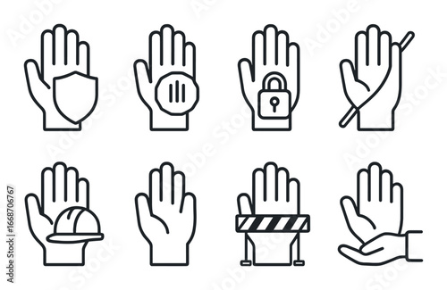 hand, safety, icon, dark, vector, security, industrial, protection, shield, stop, lock, caution, barrier, helmet, glove, universal, symbol, signs, illustration, collection, warning, graphical, set, prevention, attention, handle, equipment, tool, safe, guard, alert, emblem, graphic, pictogram, prevent, protect, safeguard, secure, hazard, workplace, risk, control