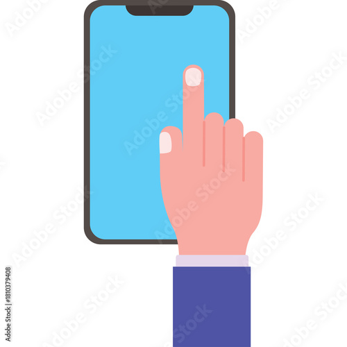 touch, hand, screen, smartphone, mobile, phone, digital, technology, device, tapping, pointing, interface, user, interaction, gesture, communication, app, application, online, cyberspace, web, connected, wireless, datum, information, business, work, professional, suit, shirt, blue, white, icon, symbol, graphic, illustration, vector, isolated, concept, media