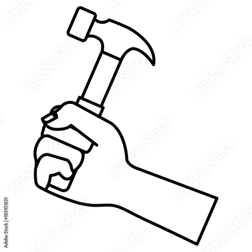 hand with hammer tool isolated icon vector illustration design