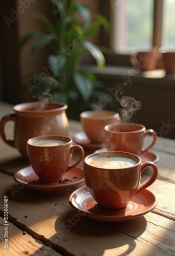 handcrafted artisan clay coffee cups placed rustic wooden table natural textures, ceramic, nature, textured, design, home, earthy, style, minimalism, decor
