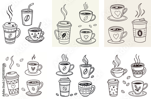 Hand-Drawn Doodle Coffee Cups – Cute Sketch Vector Set for Cafe Logos and Merchandise set bundle
