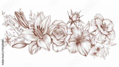 flower, floral, blossom, nature, leaf, vintage, romantic, design, rose, graphic, drawing, summer, plant, retro, background, botanical, beauty, decorative, art, flora, spring, garden, bouquet, card, element, invitation, bloom, engraving, black, elegance, composition, wedding, botany, white, greeting, drawn, vignetting, tattoo, pattern, frame, ornament, ornate, tree branch, silhouette, hand, love, collection