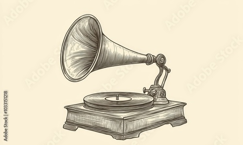 Hand-drawn vintage gramophone with horn.